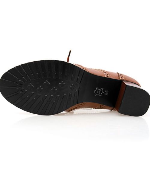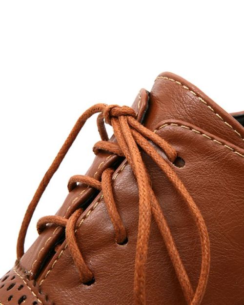 Fashion Round Toe Chunky Mid Heel Lace Up Ankle Brown PU Cavalier Boots