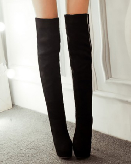 Fashion Winter Round Toe Slip On Patchwork Stiletto Super High Heel Black PU Over The Knee Cavalier Boots
