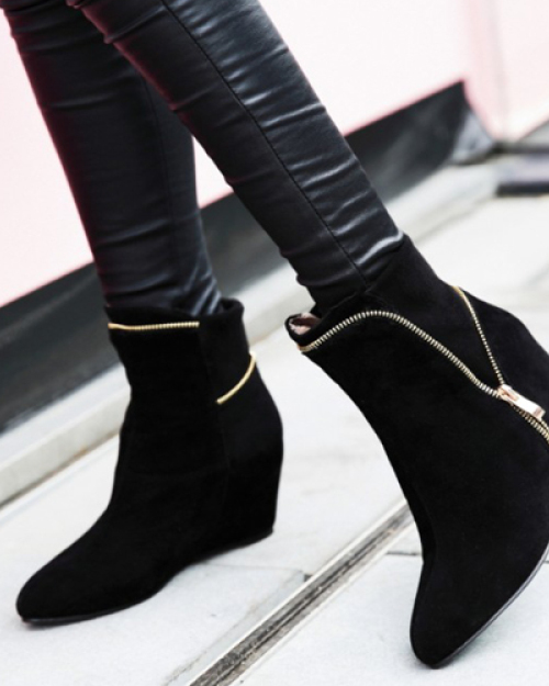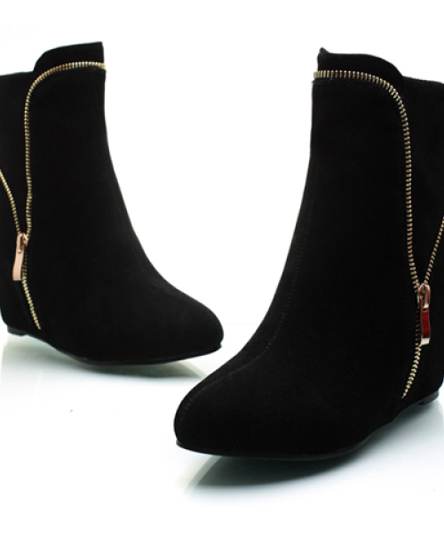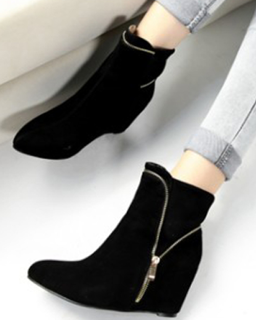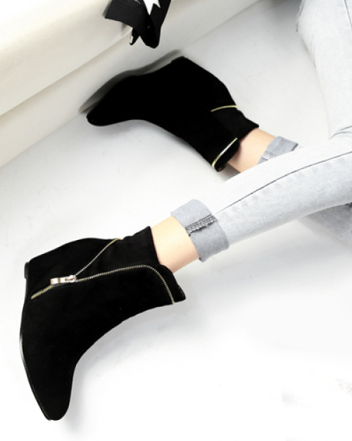 Trendy Pointed Closed Toe Zipper Design High Heel Black Suede Ankle Boots