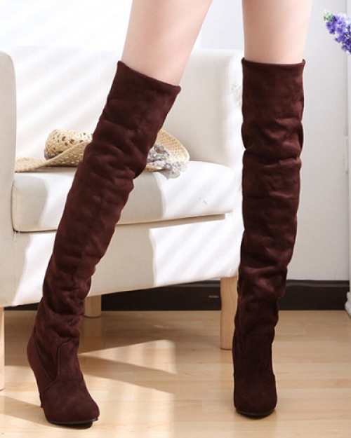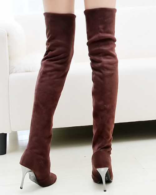Winter Fashion Round Toe Slip on Stiletto High Heel Brown Suede Over the Knee Cavalier Boots