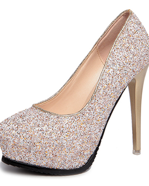 Fashion Round Closed Toe Platform Stiletto Super High Heel Champagne PU Basic Pumps