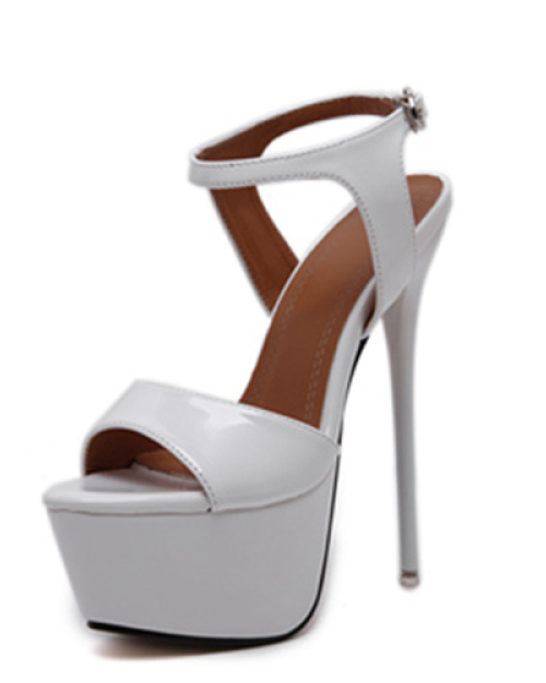 Trendy Pointed Peep Toe Hollow-out Stiletto Super High Heel White PU Pumps