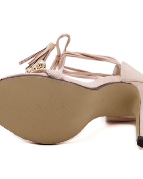 Stylish Open Toe Cross Lace-up Hollow-out Stiletto Super High Heel Apricot PU Ankle Strap Sandals