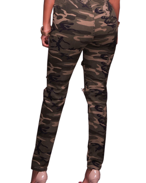 Stylish Camouflage Printed Broken Holes Denim Pants