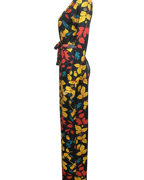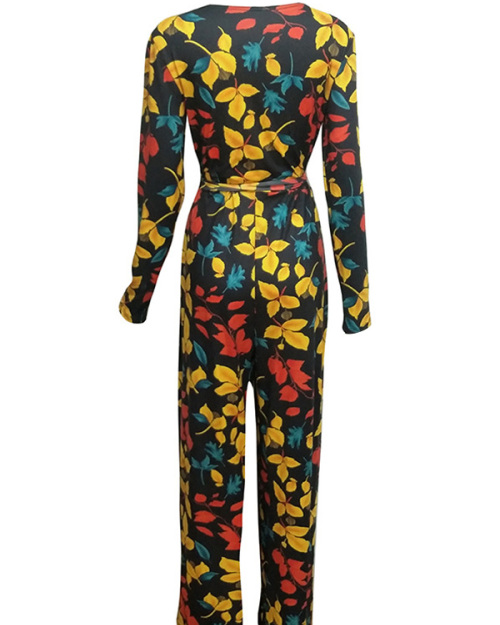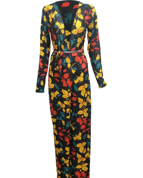Stylish Deep V Neck Floral Printed Qmilch One-piece Jumpsuits
