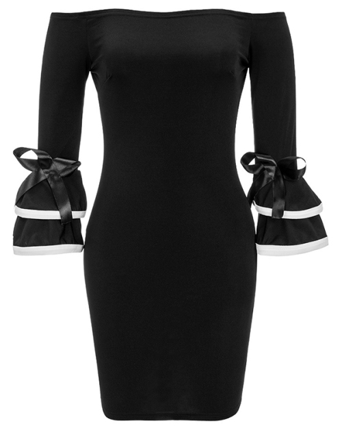 Stylish Dew Shoulder Long Sleeves Patchwork Black Polyester Sheath Mini Dress