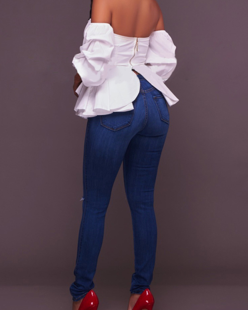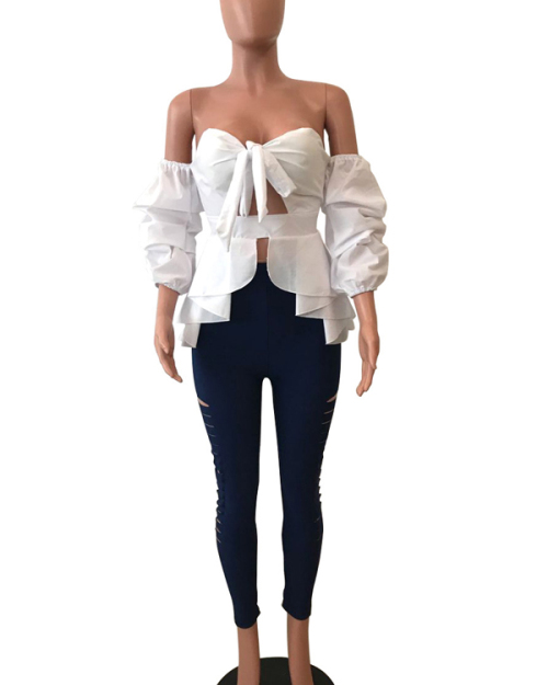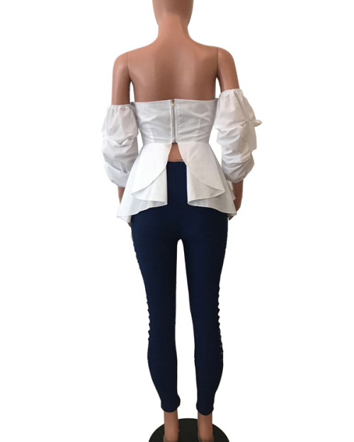 Stylish Dew Shoulder Zipper Design White Cotton Shirts