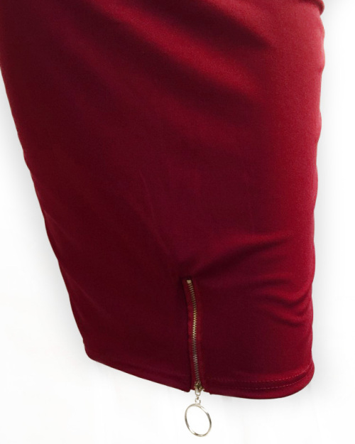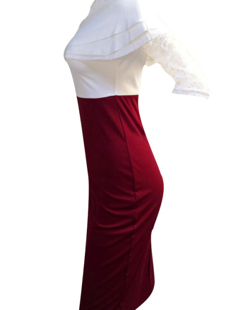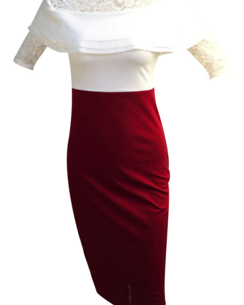 Stylish Falbala Design Wine Red Cotton Blend Sheath Mid Calf Dress