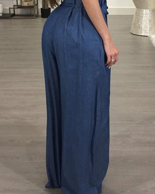 Stylish High Waist Drawstring Ligh Blue Cotton Pants