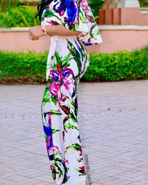 Stylish Printed White Milk Fiber One-piece Jumpsuits