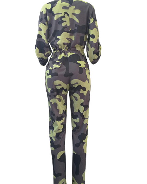 Stylish Round Neck Camouflage Printed Polyester One-piece Jumpsuits