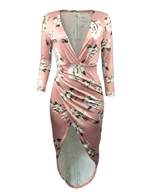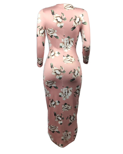 Stylish Round Neck Non Positioning Printing Sheath Mid Calf Dress