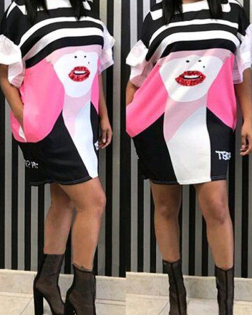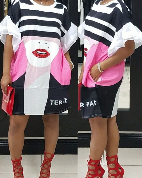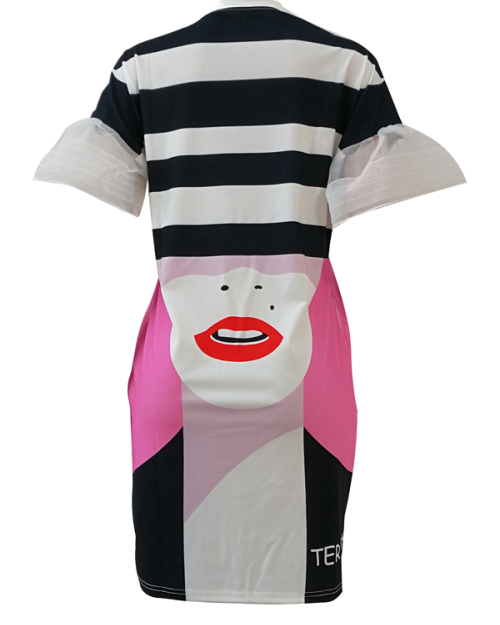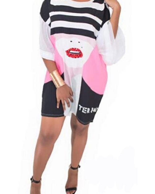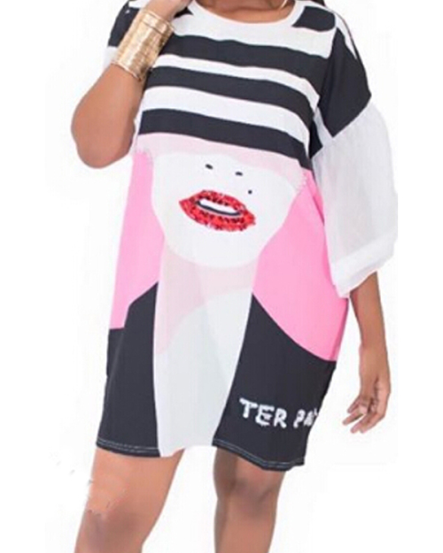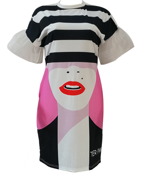 Stylish Round Neck Printed White Polyester Knee Length Dress