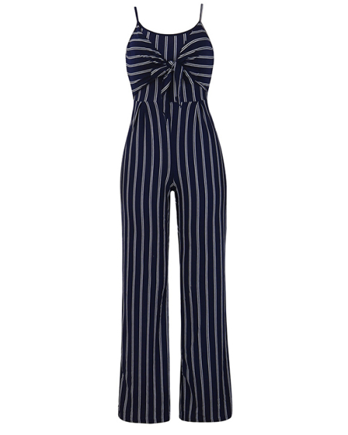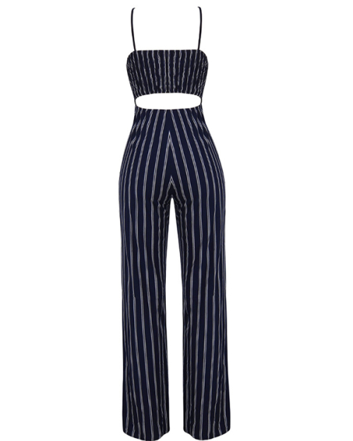 Stylish Striped Royalblue Cotton One-piece Jumpsuits