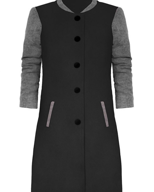 Stylish Turndown Collar Patchwork Black+Grey Polyester Coat