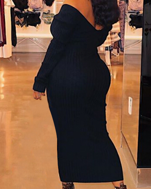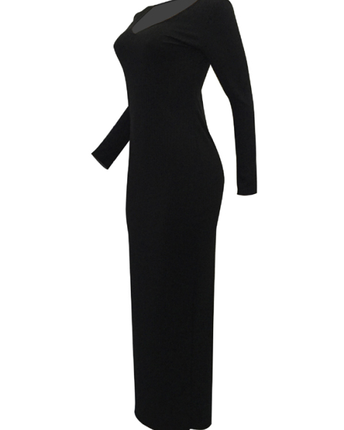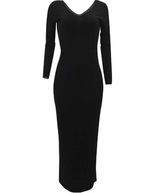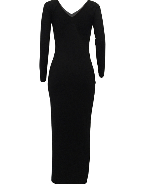 Stylish V Neck Black Cotton Blend Sheath Mid Calf Dress