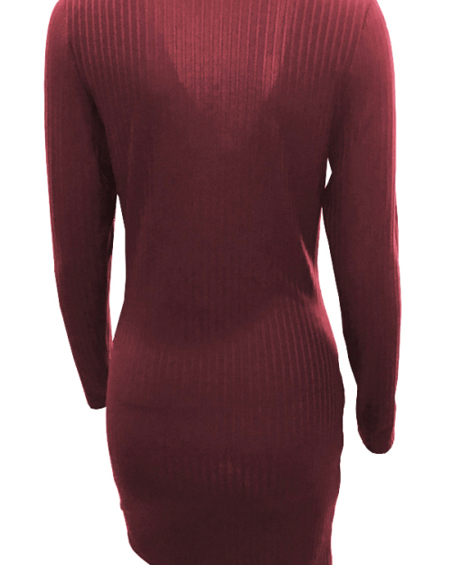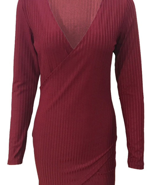 Stylish V Neck Long Sleeves Wine Red Polyester Sheath Mini Dress