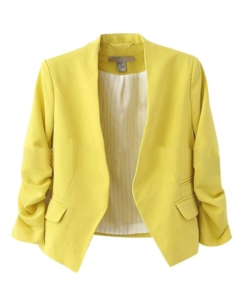 Stylish V Neck Long Sleeves Yellow Cotton Blends Short Coat