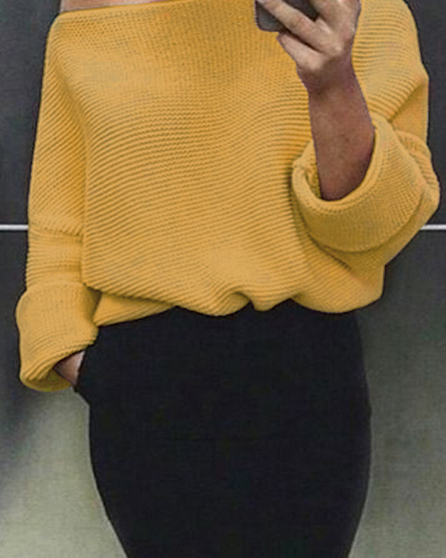 Euramerican Round Neck Long Sleeves Yellow Acrylic Sweaters
