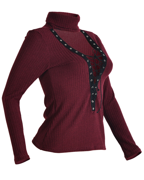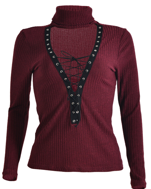 Sexy Deep V Neck Hollow-out Wine Red Knitting Sweaters