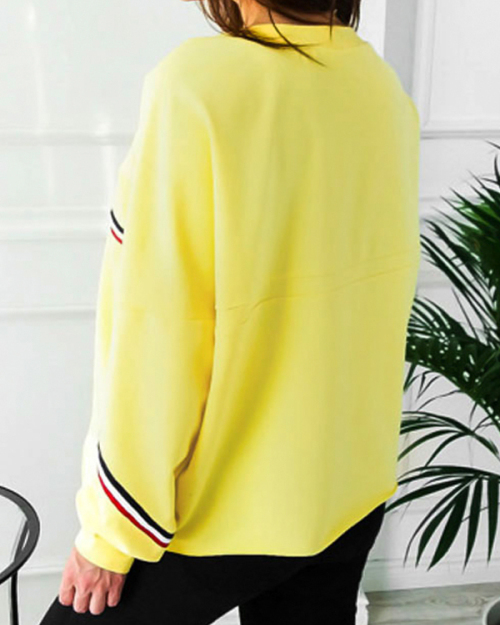 Leisure Round Neck Patchwork Yellow Polyester Pullovers