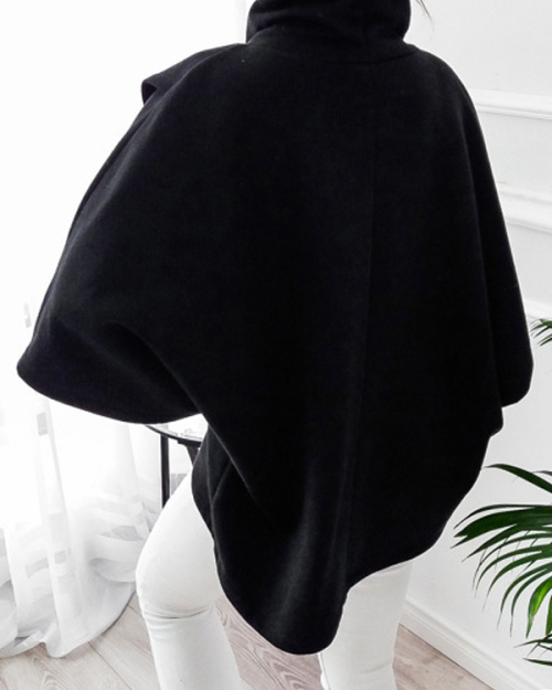 Trendy Turtleneck Asymmetrical Black Cotton Blends Pullovers