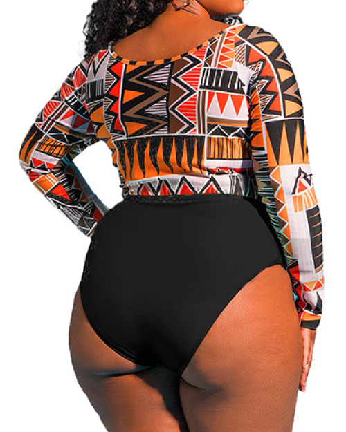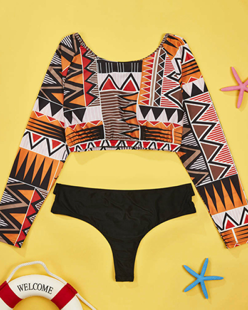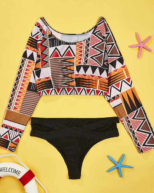 Euramerican Printed Hollow-out Nylon Two-piece Swimwear