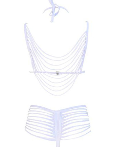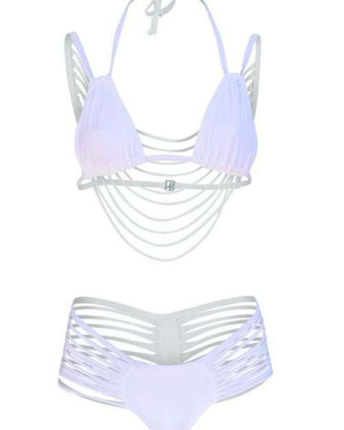 Euramerican Spaghetti straps Hollow-out White Spandex Two-piece Swimwear