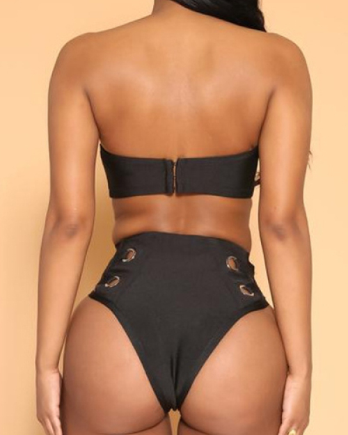 Sexy Hollow-out Black Ployester Two-piece Swimwear