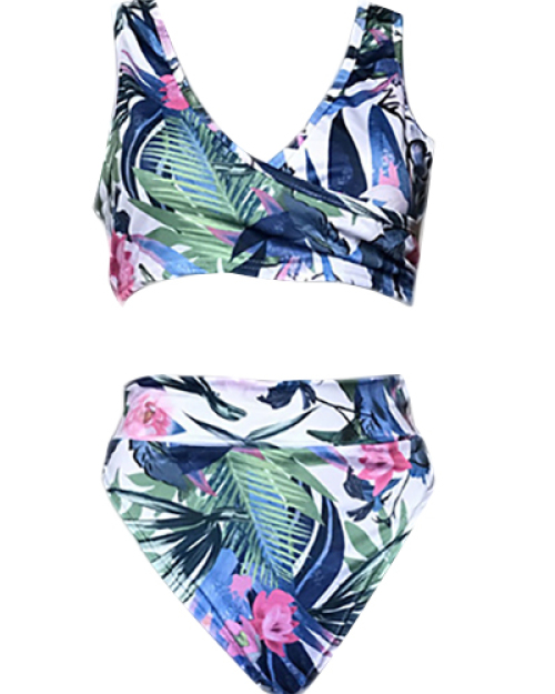 Sexy Printed Milk Fiber Two-piece Swimwear (With Shawl)