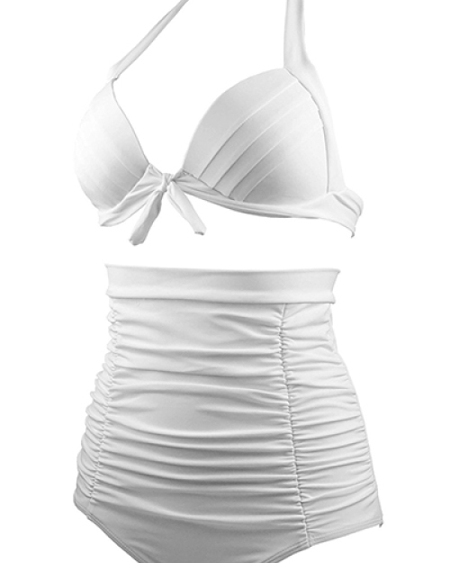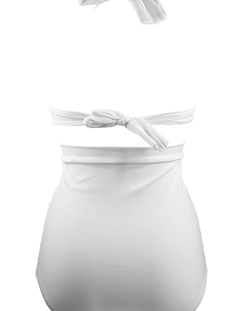 Sexy V Neck High Waist White Nylon Two-piece Swimwear