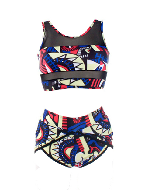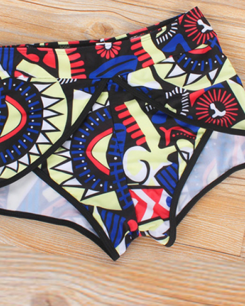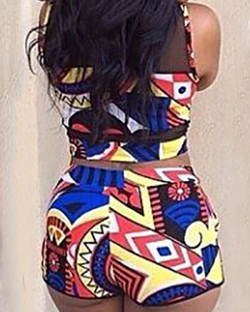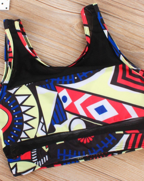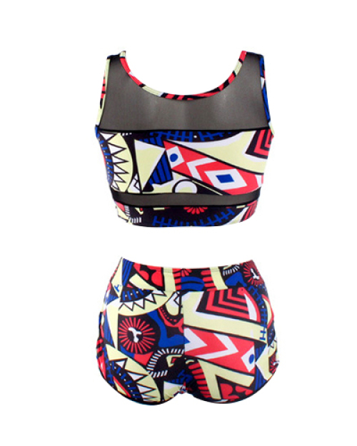 Charming Round Neck Printed Polyester Two-piece Swimwear