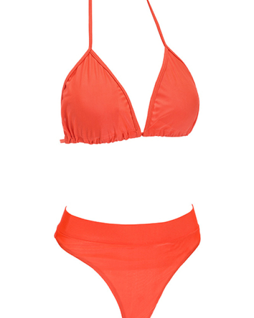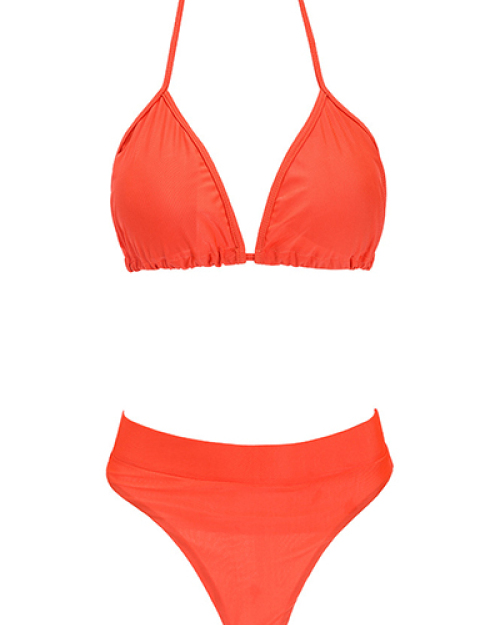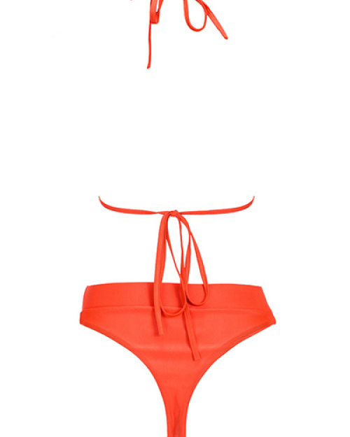 Euramerican Halter Neck Orange Nylon Two-piece Swimwear