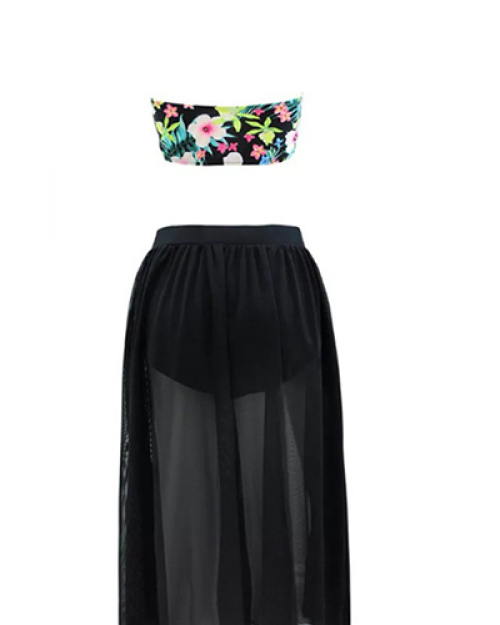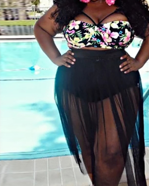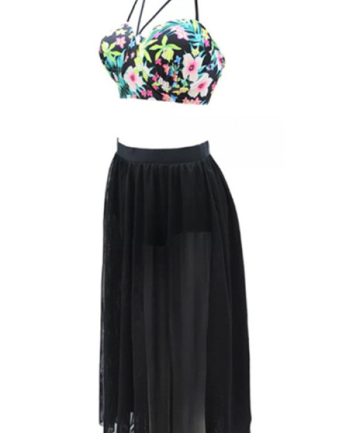 New Style Halter Neck Hollow-out Print Two-piece Swimwear