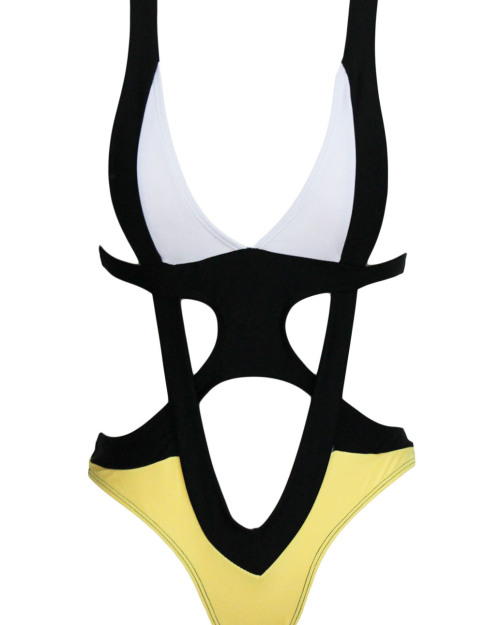 Cheap Sexy Cut out Multicolored Patchwork One-piece Teddy Swimwear