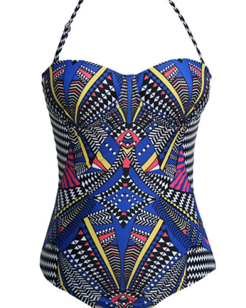 Sexy Halter Neck Printed Ployester One-piece Swimwear