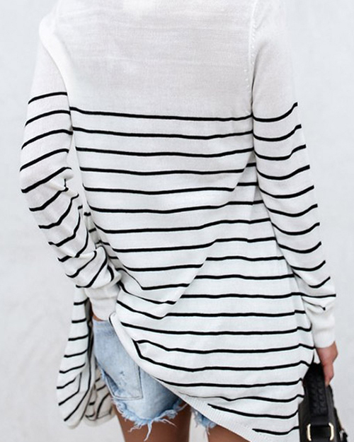 Leisure Round Neck Striped White Blending T-shirt