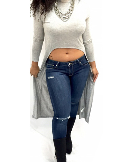 Contracted Style Mandarin Collar Long Sleeves Asymmetrical White Blending Blouses