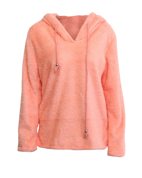 Euramerican Hooded Collar Long Sleeves Pink Cotton Shirts