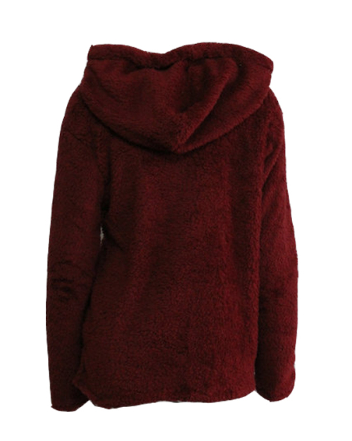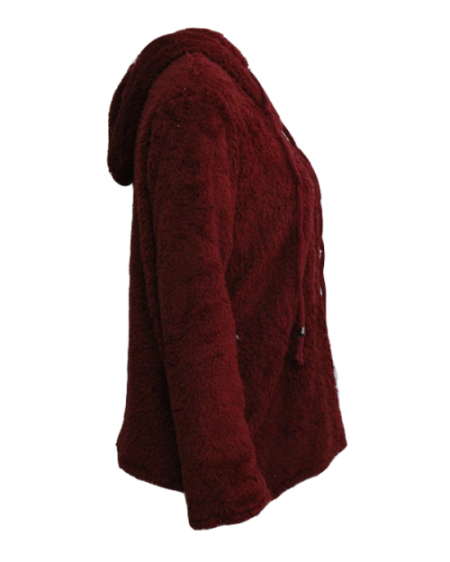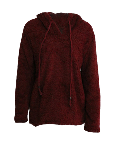 Euramerican Hooded Collar Long Sleeves Wine Red Cotton Shirts