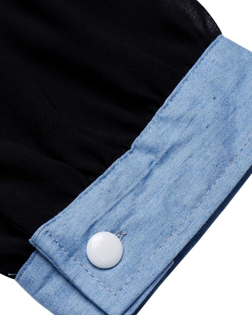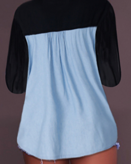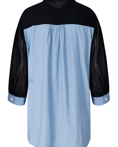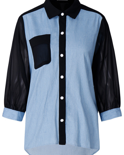 Euramerican Mandarin Collar Patchwork Blue Cotton Shirts