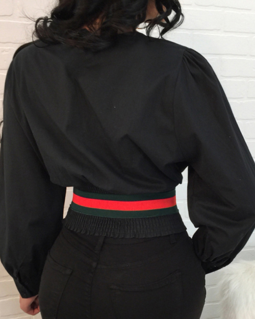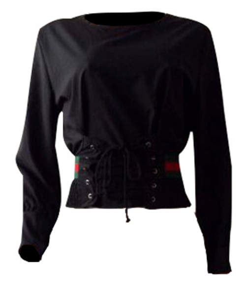 Euramerican Round Neck Bandage Printed Patchwork Black Cotton Shirts