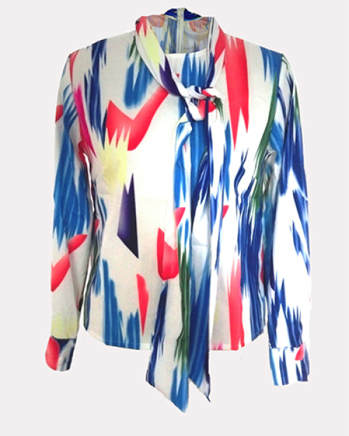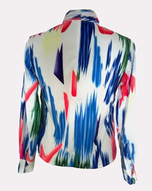 Euramerican Round Neck Long Sleeves Color-block Patchwork Polyester Shirts