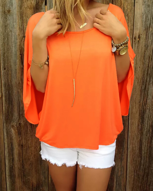 Leisure Round Neck Backless Orange Polyester T-shirt