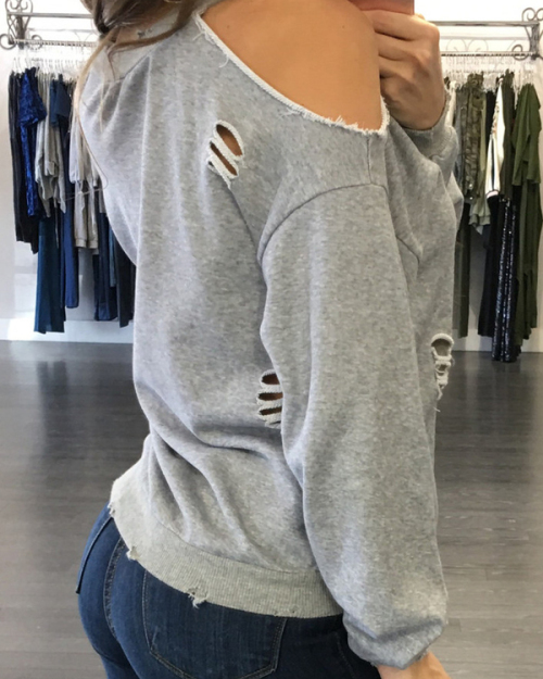 Sexy Round Neck Hollow-out Grey Cotton Shirts