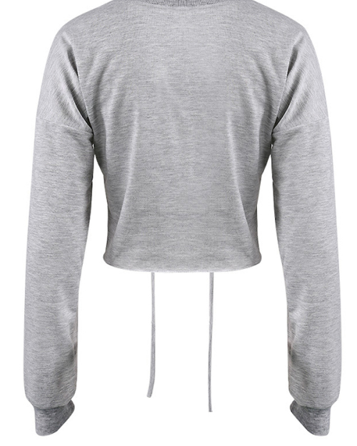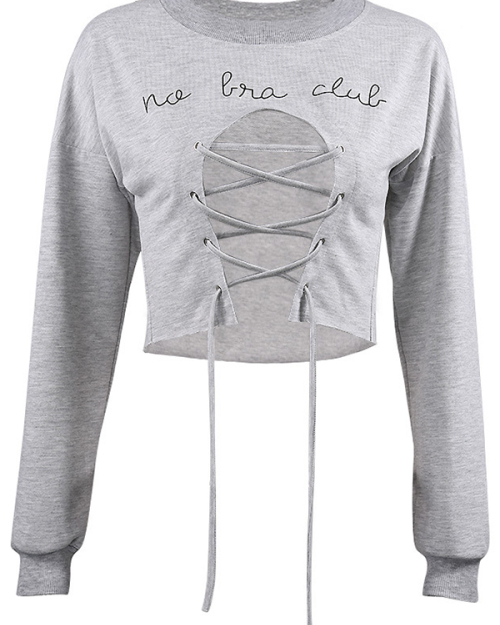 Sexy Round Neck Lace-up Hollow-out Grey Polyester Blouses