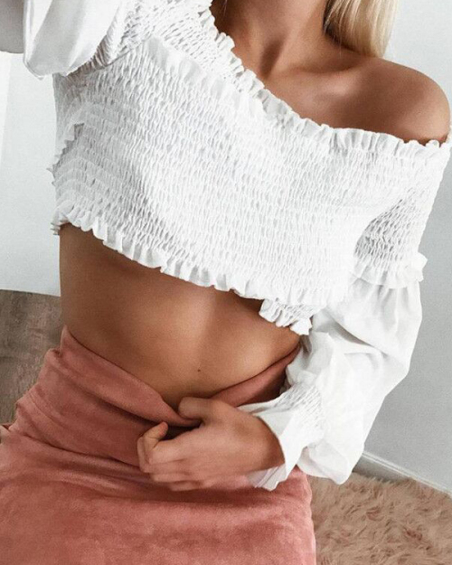 Stylish Dew Shoulder Drape Design White Polyester Shirts