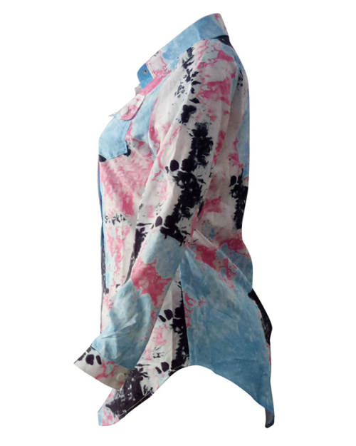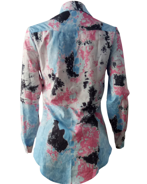 Stylish Turndown Collar Printed Blue Polyester Shirts
