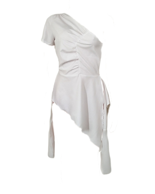 Trendy Dew Shoulder Asymmetrical White Polyester Tops