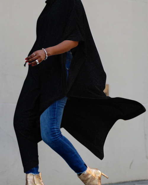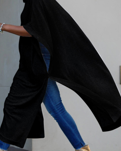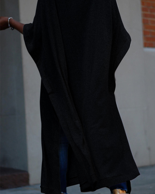Trendy Turtleneck Half Sleeves Black Cotton Blends Long Coat